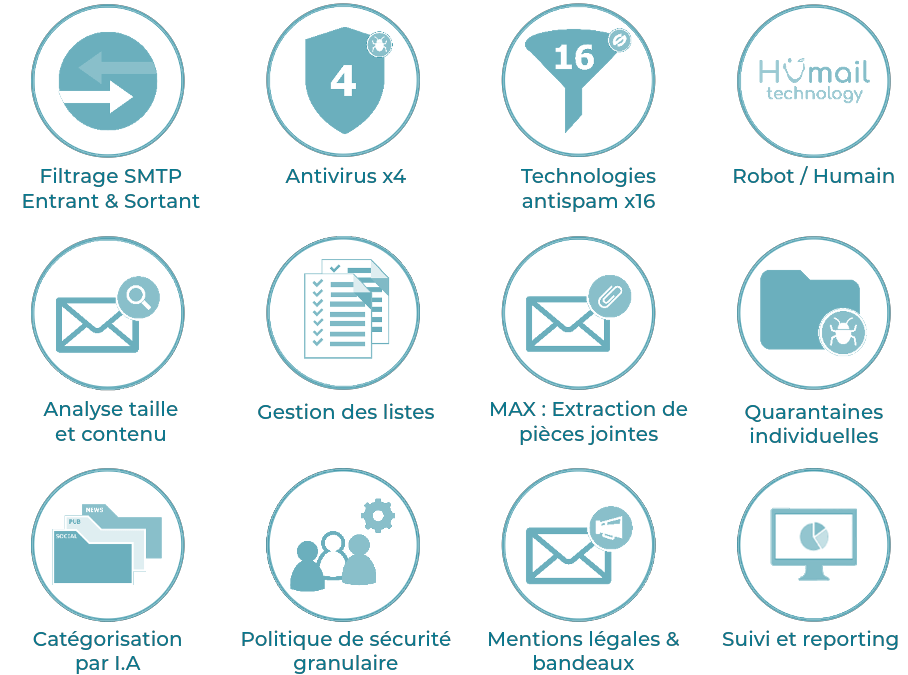 Notre Anti-spam détecte, filtre et prévient les e-mails indésirables. Il utilise l’intelligence artificielle et le machine learning pour procéder à une analyse comportementale de l’ensemble de l’email.