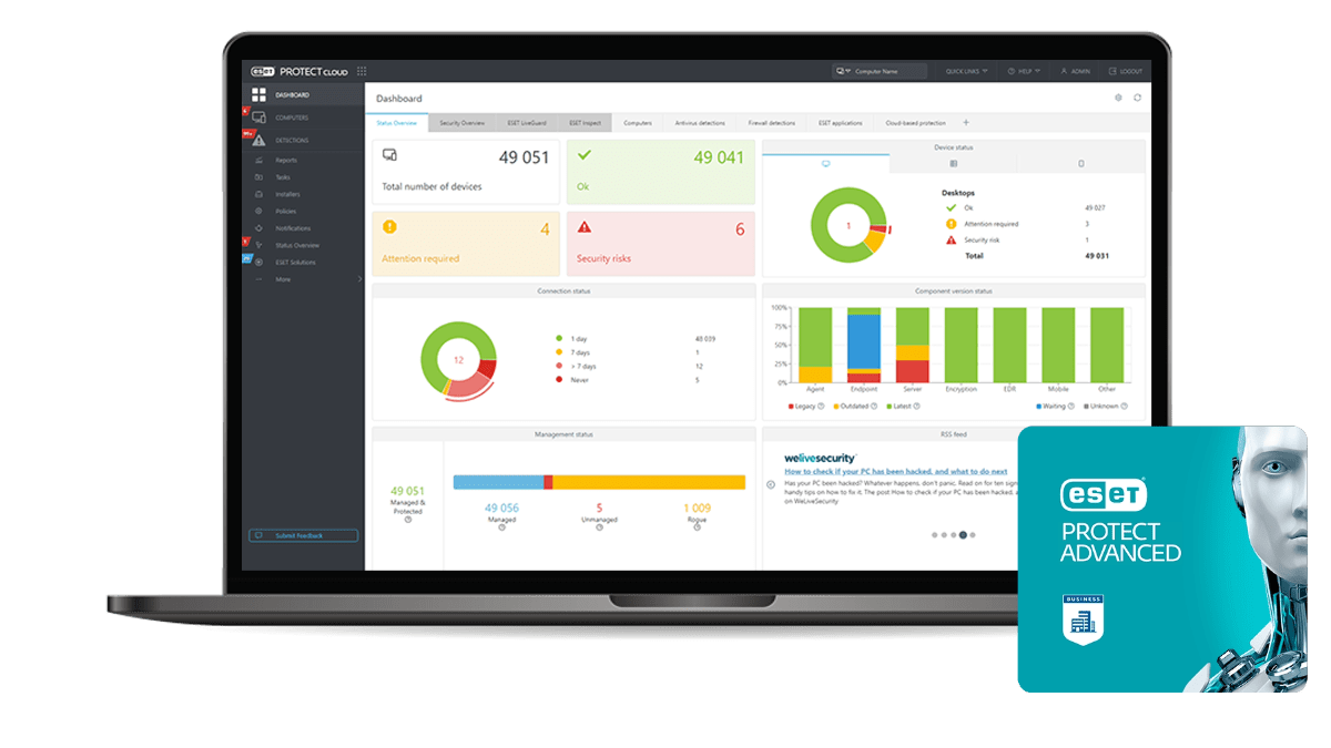 Notre solution antivirus est basée sur la technologie ESET Protect Advanced et protège vos endpoints contre les ransomwares et les menaces zero-day.